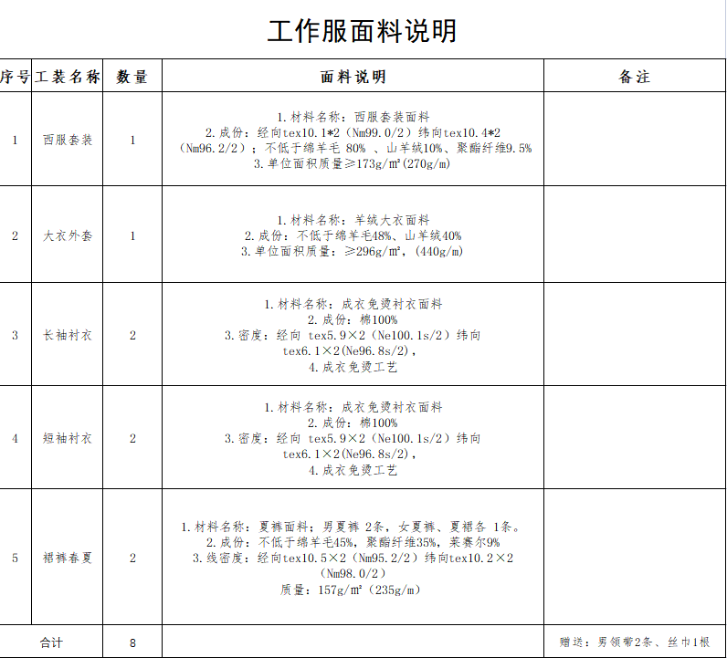 4.采購規模及內容概述:眉山市東岸建設有限公司服裝采購共計61套(暫定)。